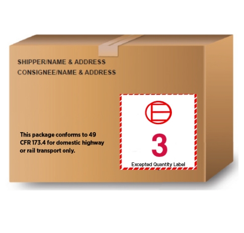 Excepted Quantities 49 CFR 173.4a Again, the fuel must be packaged in separately wrapped 1 fluid oz. containers. Each package is limited to a total of 1 liter of fuel, and must display the Excepted Quantity label embossed with the number 3 representing the shipping class.