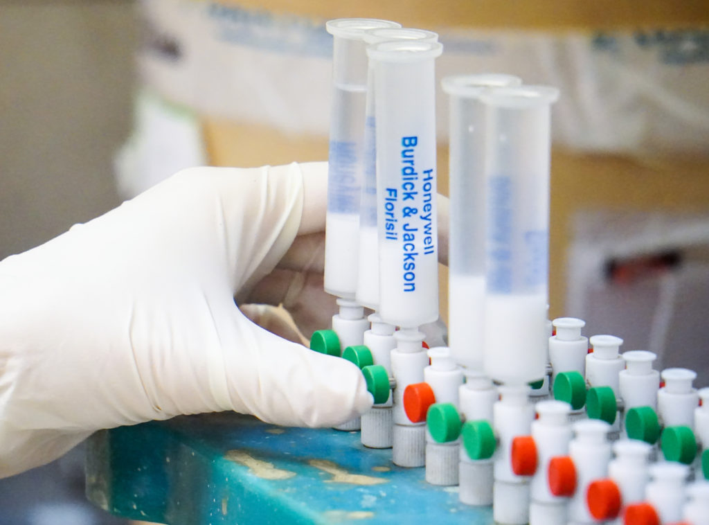 “We run EPA method 545 for these algal toxin tests,” explained Smith. “And it’s a simple extraction. We simply are given a water source that has been preserved. We take a small amount and freeze/ thaw it three times to destroy any biological cells and release all toxins that may exist. This process takes five hours before we filter the sample and run the test.”